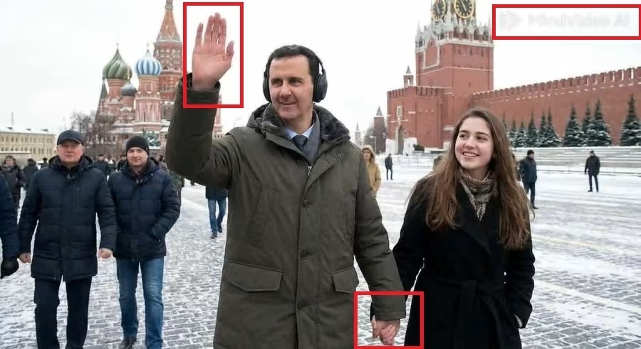 وتشمل الصورة أخطاء في أبعاد المباني بخلفية المشهد، وملامح بشار
