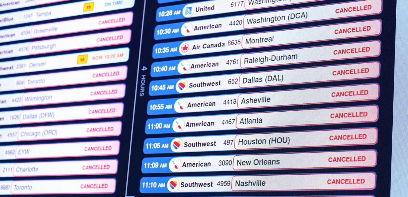 ، بإلغاء وتأخير واسع النطاق للرحلات الجوية في بعض من أكثر مطارات