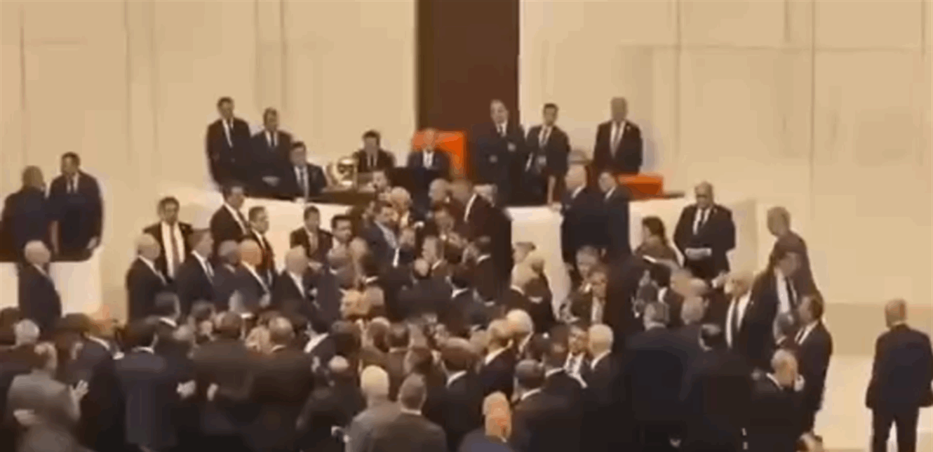 فوضى ومشادات بالأيدي داخل البرلمان التركي أثناء أداء وزير العدل الجديد أكين غورليك لليمين الدستورية pic.twitter.com/FMmGM3awkr