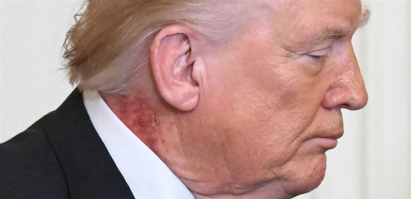 بدت شبيهة بالطفح الجلدي.. "بقعة حمراء" في رقبة ترامب تثير التساؤلات