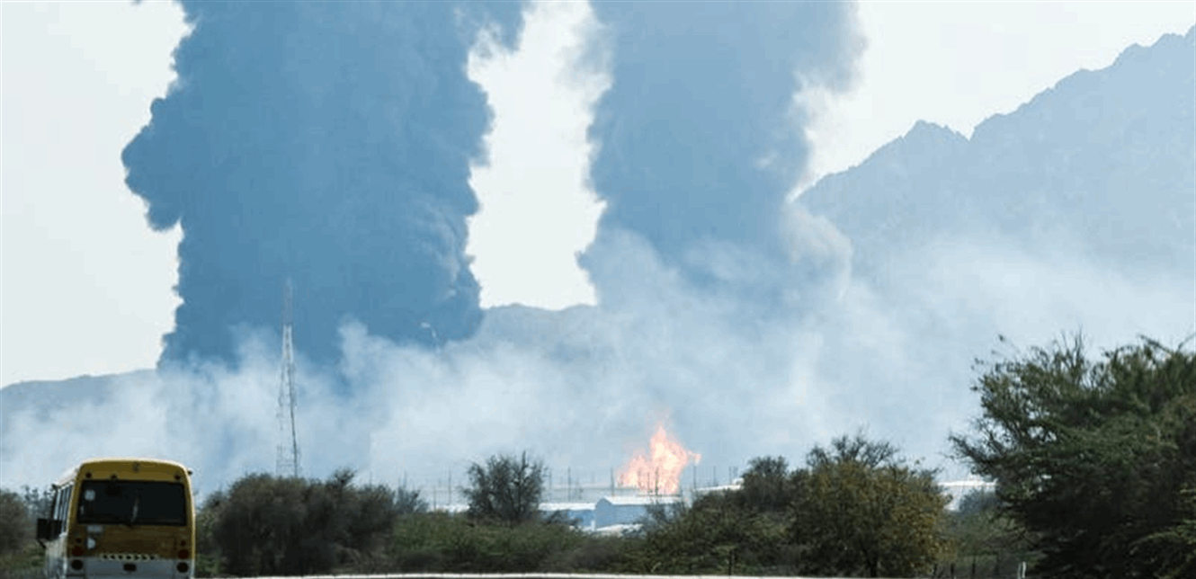 السيطرة على حريق في منطقة الفجيرة للصناعة البترولية والعودة إلى الأعمال الاعتيادية بعد اعتراض مسيّرة
