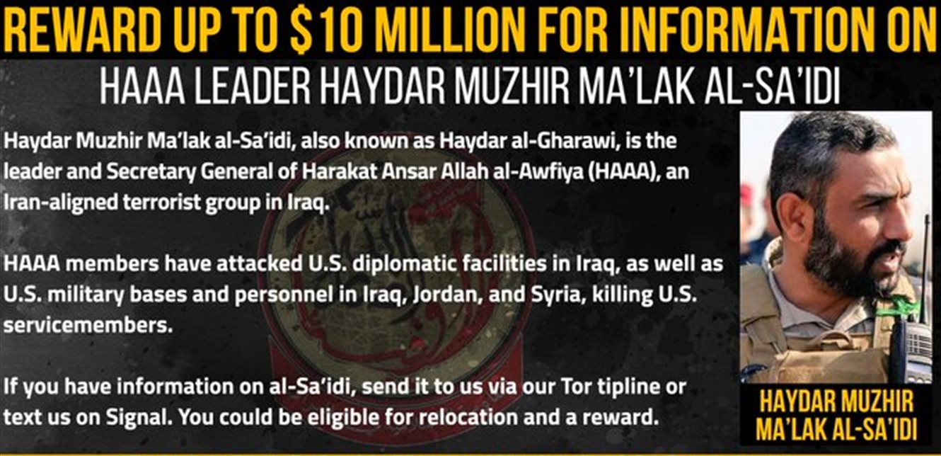 أميركا تعرض 10 ملايين دولار مقابل معلومات عن "حيدر الغراوي"