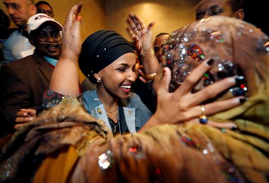 إلهان عمر، وهي أميركية من أصول صومالية، مرشحة عن الديمقراطيين في الدائرة الخامسة لولاية مينيسوتا، تمكّنت من الإطاحة بالجمهورية جينيفر زيلينكسي.