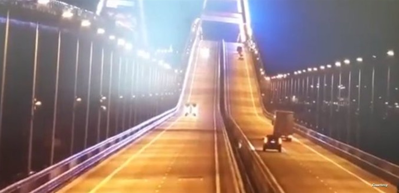 WATCH: Moment of massive explosion on Crimea's Kerch bridge. This is the only bridge to connect Russia to Crimea pic.twitter.com/o7Vyzgn3lR